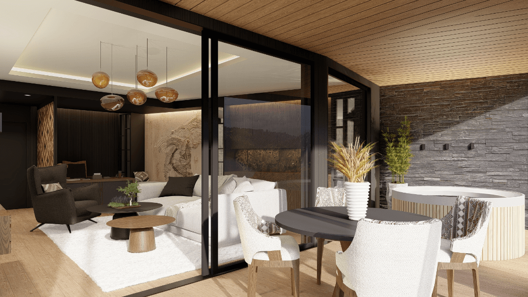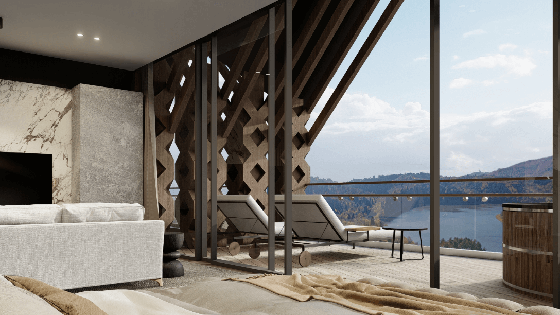 W poszczególnych apartamentach, posiadających strefę relaksu, znajdują się dodatkowe atrakcje: biokominek, hot tub, leżanki infrared, sauna infrared, ogródki (apartamenty na parterze), każdy z pięknym widokiem na okolicę. Na poziomie +4 znajduje się 12 komfortowych penhouse’ów z przepięknym widokiem i otwartymi tarasami.