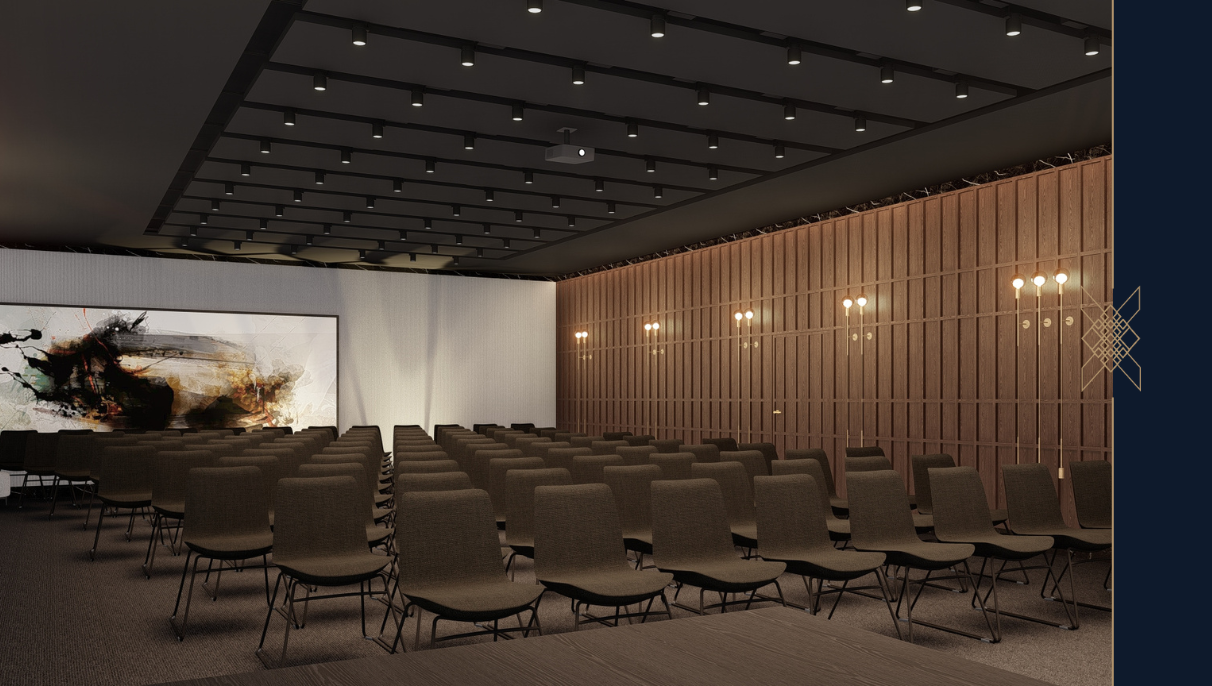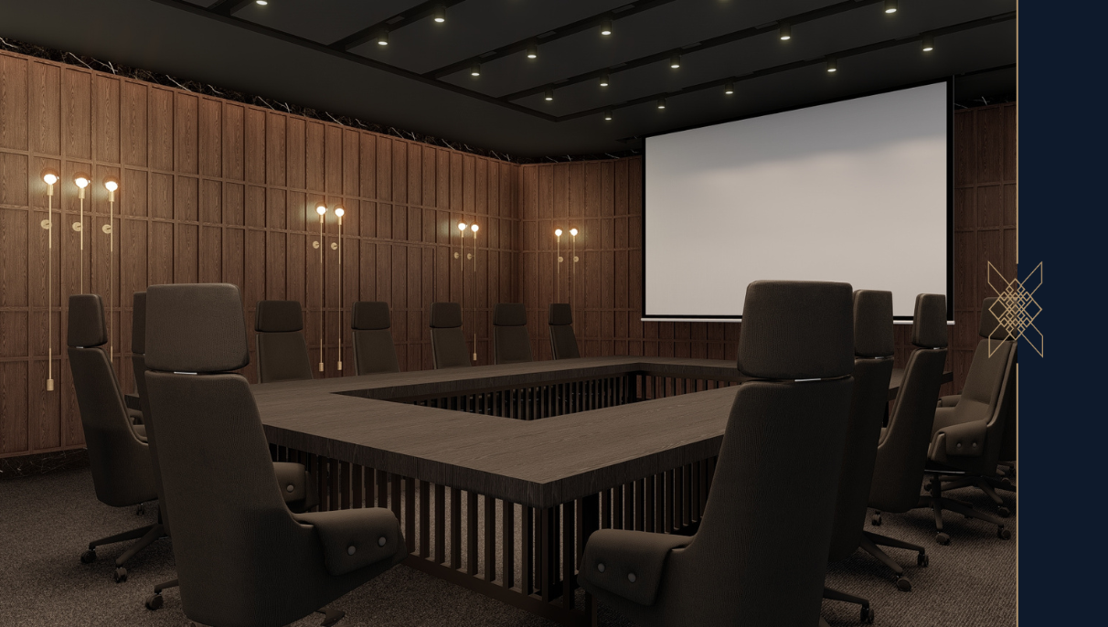 Ekranowany boardroom, sale konferencyjne. Dodatkowo na każdym piętrze znajdują się mniejsze, kameralne boardroomy z możliwością ich łączenia, z jednoczesną możliwością odseparowania ich na wyłączność do dyspozycji grupy Gości wraz z określoną ilością apartamentów. Jeden z boardroomów jest w pełni ekranowany, akredytowany certyfikatem bezpieczeństwa technicznego, co gwarantuje bezpieczeństwo prowadzonych tam rozmów. Nasz rozwiązanie umożliwia przeprowadzanie kameralnych imprez okolicznościowych, szkoleniowych czy też spotkań biznesowych na terenie części hotelu w różnych konfiguracjach, z możliwością odseparowania wybranej strefy od pozostałej części hotelu specjalnymi drzwiami w korytarzu, np. 2-3-4 apartamenty + sala konferencyjna.