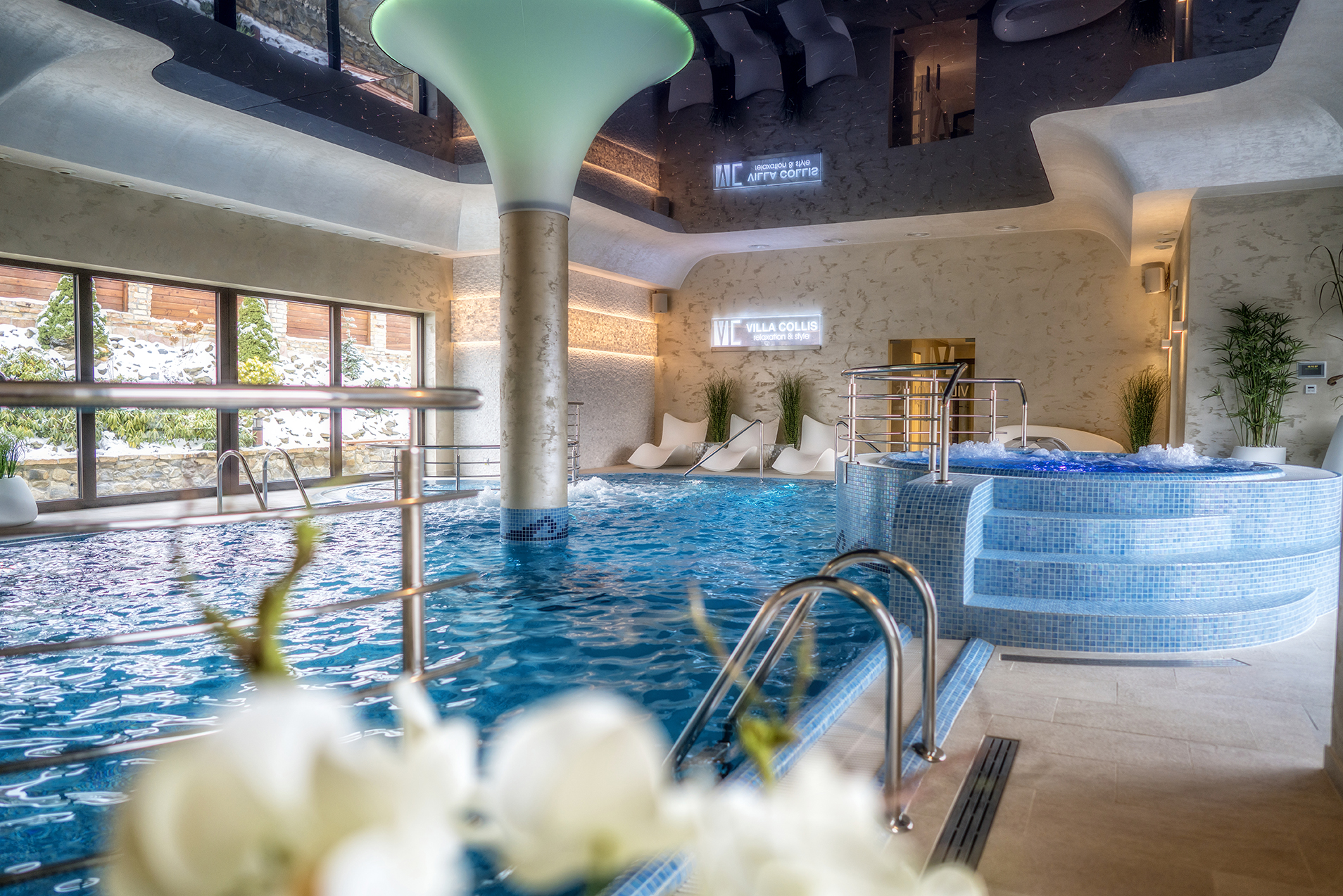 Inwestycja składać się będzie z dwóch budynków połączonych ze sobą łącznikiem. Główny budynek hotelowy połączony będzie ze strefą SPA podziemnym łącznikiem. W istniejącym budynku Villa Collis znajdować się będzie kompleks SPA z recepcją, strefa wellnes, salony masażu, strefa fitness. Z całego budynku SPA położonego nad wąwozem rozciąga się wspaniały widok na jezioro, wzgórza i lasy, co spowoduje, że wypoczynek i relaks stanie się jeszcze bardziej atrakcyjny. Profesjonaliści zadbają o najwyższy standard oferowanych usług zabiegów odmładzających i odchudzających. Zabiegi i masaże oparte będą na unikalnej koncepcji i recepturach.