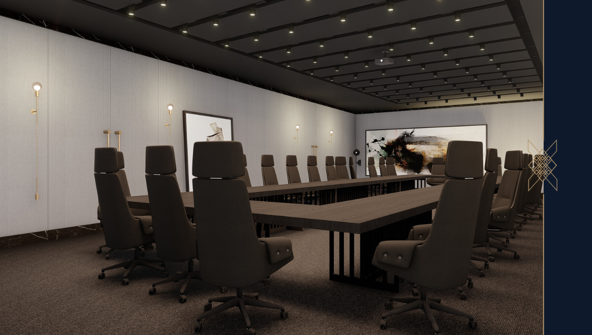 Ekranowany boardroom, sale konferencyjne. Dodatkowo na każdym piętrze znajdują się mniejsze, kameralne boardroomy z możliwością ich łączenia, z jednoczesną możliwością odseparowania ich na wyłączność do dyspozycji grupy Gości wraz z określoną ilością apartamentów. Jeden z boardroomów jest w pełni ekranowany, akredytowany certyfikatem bezpieczeństwa technicznego, co gwarantuje bezpieczeństwo prowadzonych tam rozmów. Nasz rozwiązanie umożliwia przeprowadzanie kameralnych imprez okolicznościowych, szkoleniowych czy też spotkań biznesowych na terenie części hotelu w różnych konfiguracjach, z możliwością odseparowania wybranej strefy od pozostałej części hotelu specjalnymi drzwiami w korytarzu, np. 2-3-4 apartamenty + sala konferencyjna.